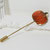 3) Broche/épingle à chapeau. Versatile, se portant aussi bien sur un gilet, le revers d'une veste ou un chapeau, cette broche-épingle a plus d'un tour dans sons sac. La citrouille, réalisée comme précédemment en résine et fil de laiton, mesure environ 2,1 cm de large sur 1,9 cm de haut. Elle est montée sur une tige en laiton de 5 cm, pour une longueur totale d'environ 7 cm.